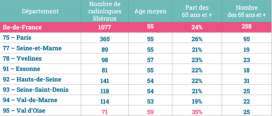 Etat des lieux des radiologues libéraux en Ile-de-France (données au 2 octobre 2023)