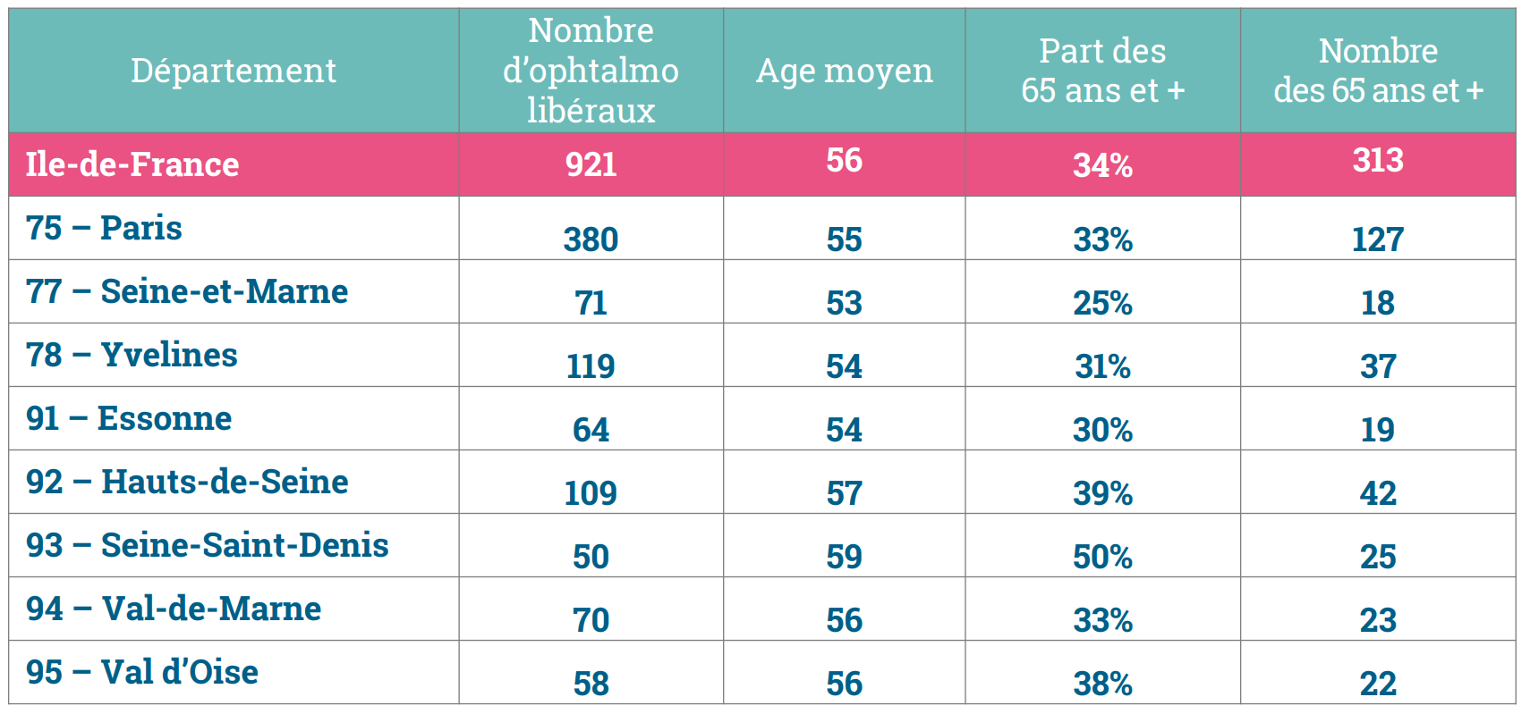 Etat des lieux des ophtalmologistes libéraux en exercice en Ile-de-France (données au 23 septembre 2025)